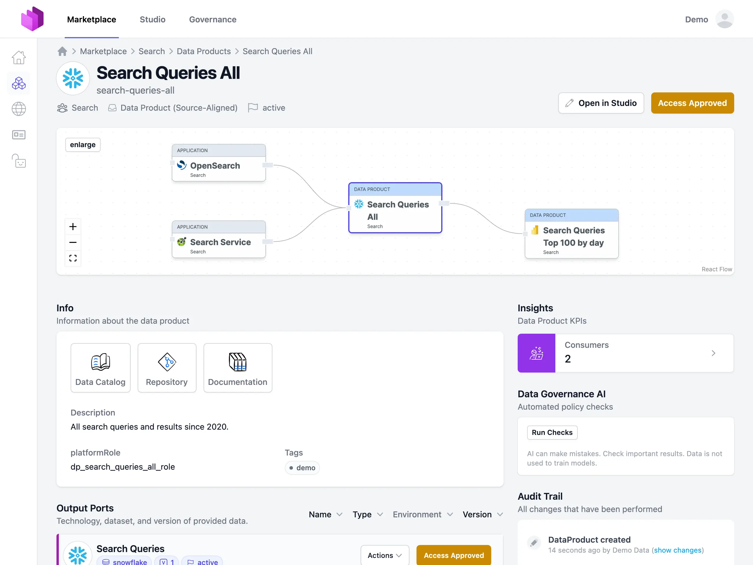 A self-service Data Product marketplace for teams and AI clients to discover, request, and access data products.
