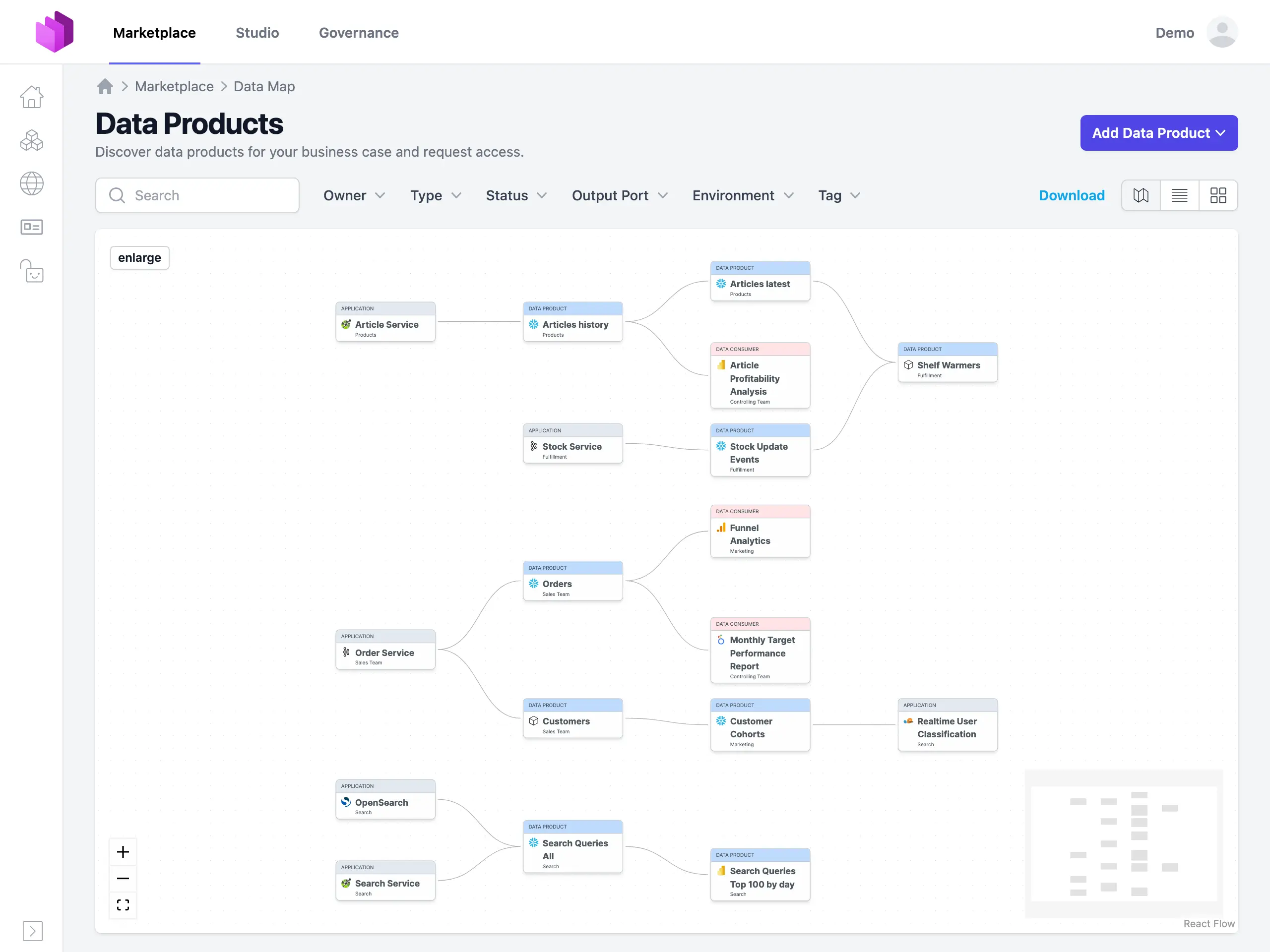A self-service Data Product marketplace for teams and AI clients to discover, request, and access data products.